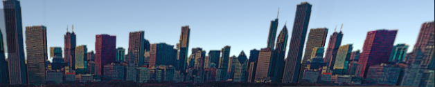 Our setting will be a small section of the city. We want an urban setting but without having to model an entire city, so we're going to have sections cut off but make the world seem larger than it is. I tried to do this by making a skyline. I removed the background off an image of an existing skyline, creating 4 quads, and making a box around the level.